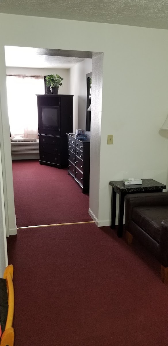 I work all over the US. Once in awhile you find a diamond in the ruff, this is one of those places. Hometown hotel owned by a great, fair hometown couple with fair prices. The owners here are great people, very accommodating and friendly. They own this location and the Big Red Motel. This location is more like an extended stay, rooms are spacious and have full kitchenette’s. If you aren’t looking for a larger style room the Big Red Motel is a block away and has regular motel rooms with mini fridges and microwaves. Very clean and well maintained. The kitchenette is fully stocked with plates, cups, silverware, knives, pots and pans, utensils, toaster, coffee maker, stove, oven, large fridge, and a microwave. You can’t go wrong no matter which location you choose. Definitely recommend AAAAA+++++